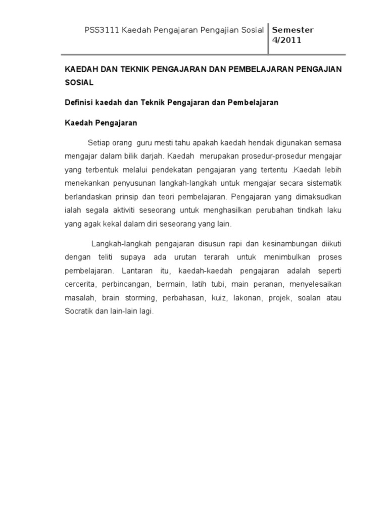Kaedah Dan Teknik Pengajaran Dan Pembelajaran Pengajian Sosial Pdf
